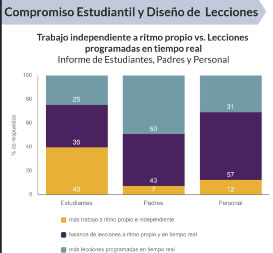 La encuesta señaló que la mayoría de los estudiantes quiere una disminución de tareas y de exigencias académicas si continúan aprendiendo a distancia durante el otoño; mientras que los padres dijeron que quieren ver un aumento de tareas y mayor exigencia para los estudiantes.